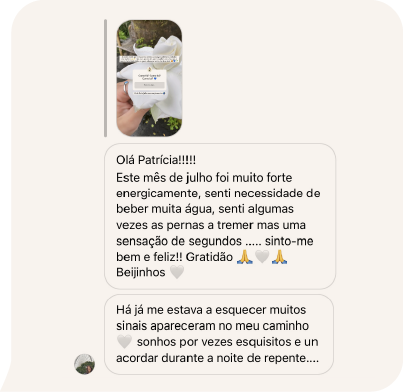 O resultar ou não não é sobre “sentir” algo, é sobre observar como pouco a pouco, Ciclo após Ciclos, a vida, a percepção, o entendimento: mudam. Esta é uma das mais bonitas partilhas que oiço de quem me encontra na rua muitas vezes “Só fiz os Ciclos e a minha vida mudou”. É um mundo a  explorar, uma porta de entrada a todo este Universo que trago comigo.